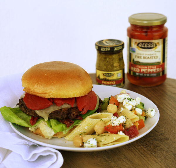 • 4 large Alessi Sweet Pimento Fire Roasted Red Peppers, sliced